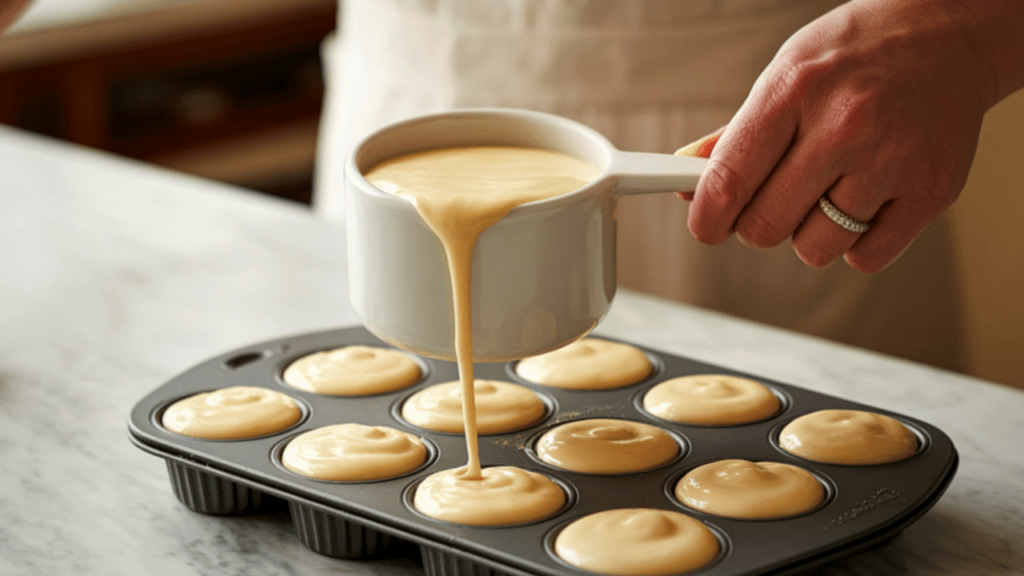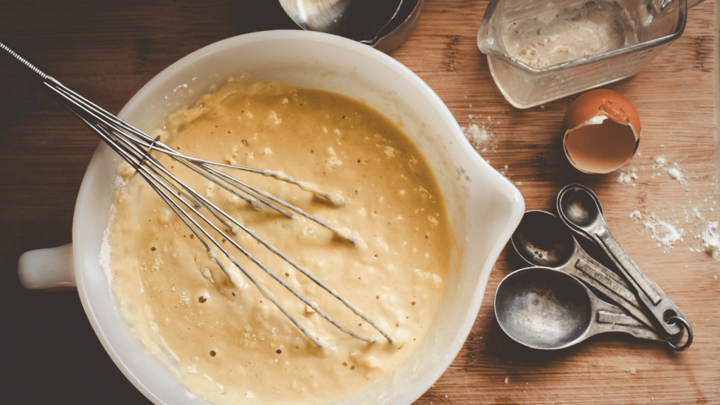 - Slowly add water (¼ to ½ cup) until batter becomes thick but pourable.