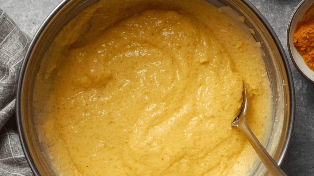 - In a bowl, mix besan, semolina, turmeric, sugar, salt, and ginger-chilli paste.